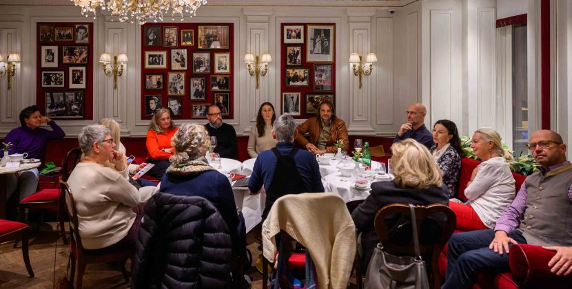 Im Café Sacher führte Dr. Rendl gemeinsam mit einem Psychologen eine angeregte Diskussion über die Bedeutung philosophischer Praxis.